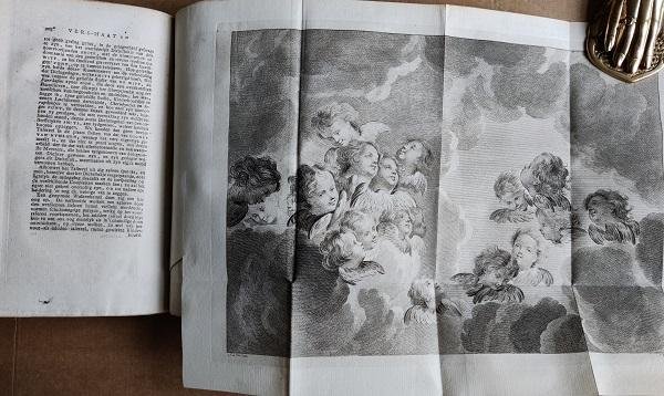 | Bijzonderheden: | Amsterdam, H. Gartman en W. Vermandel en zoon, 1794. Deel 5 en 6. Schoone kunsten. Twee delen in een band. Halfleer. 508 pp. Met negen uitslaande platen, waarvan de plaat van Picard met de allegorische afbeeldingen van Azië, Afrika en Amerika is ... |
