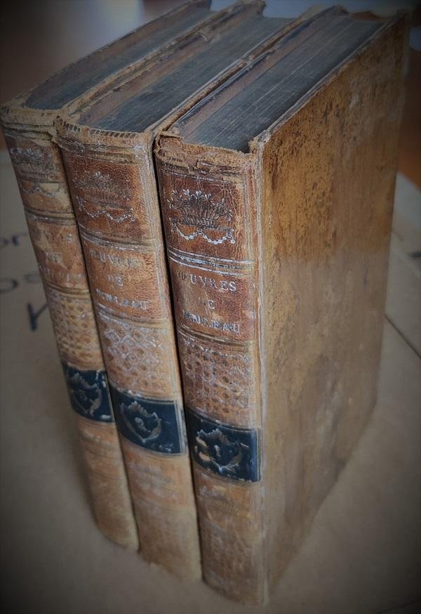 l 3 vol. Vol 1 with engraved portrait of the writer; vol. 2 engraved frontispiece. Titlepages a bit foxed. Leather bindings weary. Nicolas Boileau-Despréaux (1636 - 1711), often known simply as Boileau was a French poet and critic. He did much to reform the prevailing form of French poetry, in the same way that Blaise Pascal did to reform the prose. He was greatly influenced by Horace.