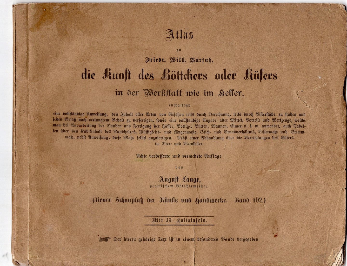 | Titel: | Atlas zu Die Kunst des Böttchers oder Küfers in der Werkstatt wie im Keller,. Achte verbesserte und vermehrte Auflage von August Lange. |