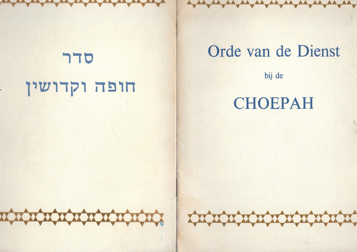 Orde van dienst bij de Choepah. Tekst in Nederlands en Hebreeuws