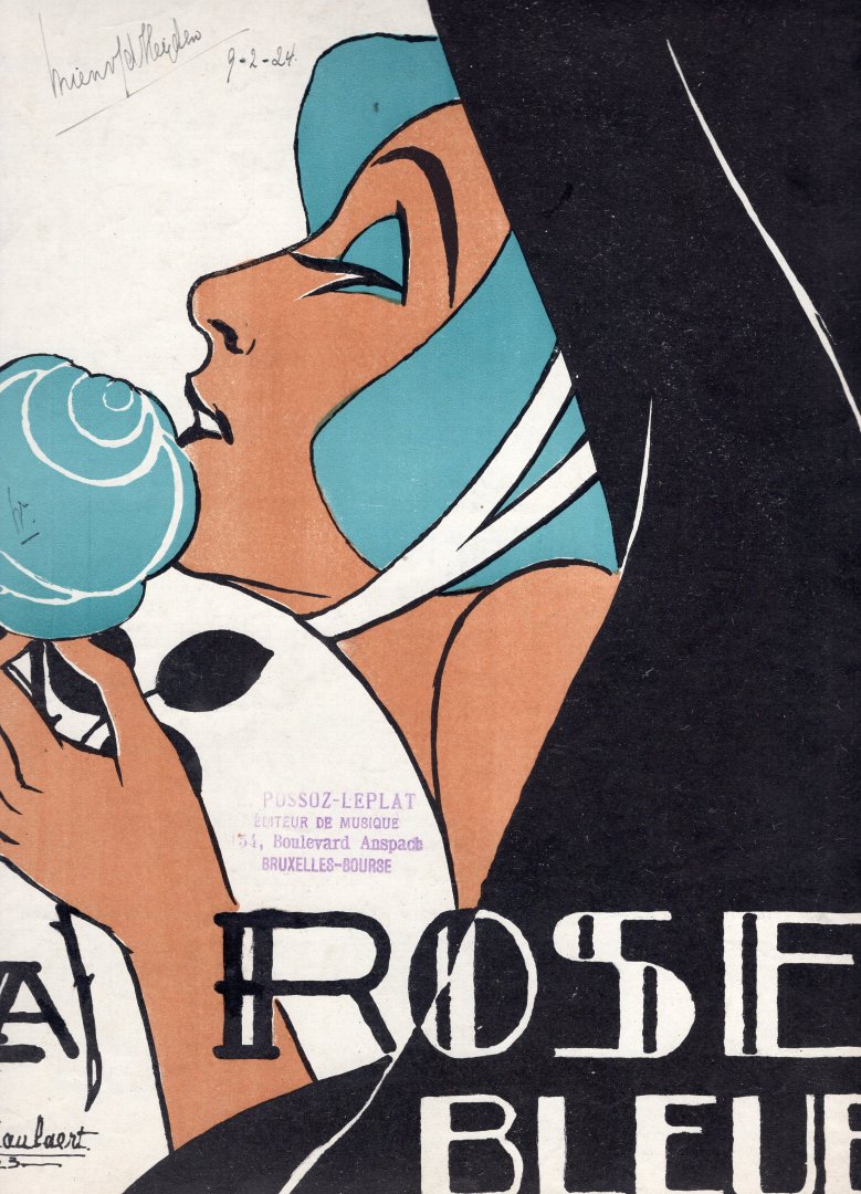 | Titel: | La rose bleue, compositie van R. Demaret. Bladmuziek met een ontwerp van de graficus J. van Caulaert. |