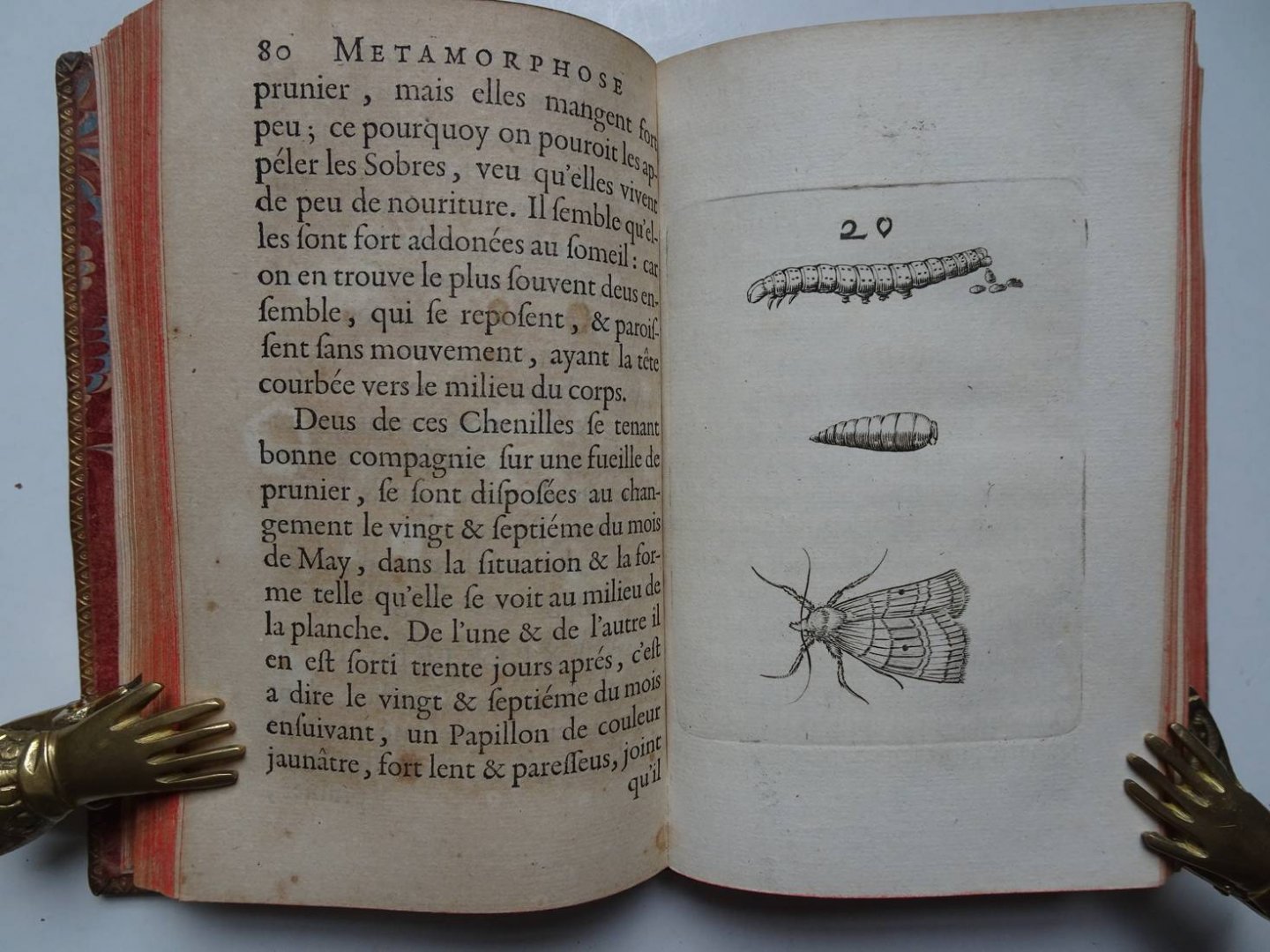 Johannes Goedaert, Middelburg (The Netherlands) 1617- Middelburg 1668, was the first one who described the metamorphosis of insects. He made watercolor drawings and etchings himself. From 1660 the first editions appeared called Metamorphosis Naturalis. Top of spines small pieces missing; text pages more or less browned. Otherwise in good condition.