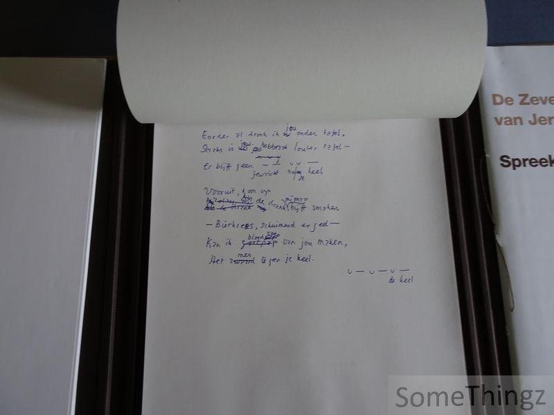 | Bijzonderheden: | Linnen, openslaande map met drie boekdeeltjes (1: Voorwoord/Liedteksten. 2: Handschriften. 3: Spreekteksten), met bijbehorende DVD en CD. Compleet. In redelijke tot goede staat (deel 1 ingescheurd langs het bindgaren, bindgaren deel 3 los). |