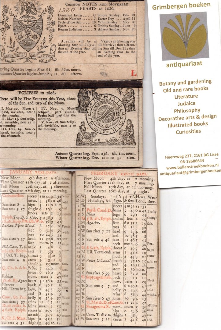 | Titel: | Collection of twenty London almanacks 1808, 1810, 1811, 1813-1817, 1819, 1820-1829, 1830. According to the motto 'Verbum Domini manet in aeternum' and the circular engr. with the arms of coats of the Stationers' Company it is published by the... |