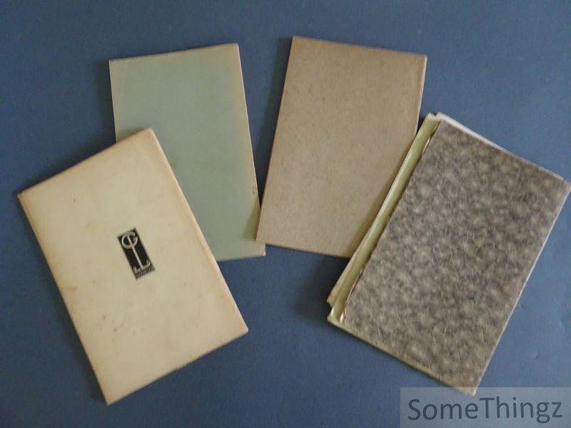 | Bijzonderheden: | 4 publicaties, gebrocheerd, 13.5x21.5cm., 65+81+58+72pp., allen in zeer goede staat (fragiele papieromslagen met wat gebruikssporen en kleine beschadigingen). . |