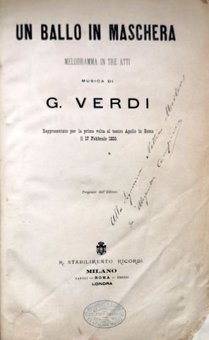 Verdi, Giuseppe: - Un ballo in maschera. Melodramma in tre atti