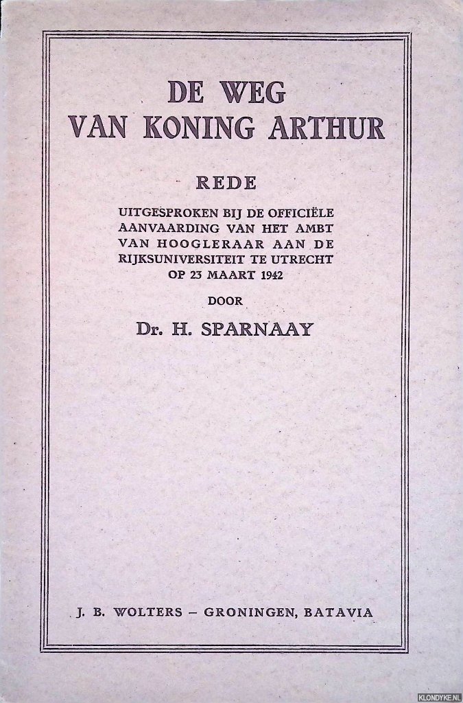 Sparnaay, Dr. H. - De weg van Koning Arthur. Rede