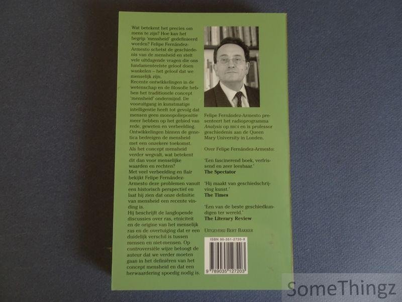 Wat betekent het precies om mens te zijn? Hoe kan het begrip 'mensheid' gedefinieerd worden? Felipe Fernàndez-Armesto schetst de geschiedenis van de mensheid en stelt vele uitdagende vragen die ons fundamenteelste geloof doen wankelen - het geloof dat we menselijk zijn. Recente ontwikkelingen in de wetenschap en de filosofie hebben het traditionele concept 'mensheid' ondermijnd. De vooruitgang in kunstmatige intelligentie heeft tot gevolg dat mensen geen monopoliepositie meer hebben op het gebied van rede, geweten en verbeelding. Ontwikkelingen binnen de genetica bedreigen de mensheid met een onzekere toekomst. Als het concept mensheid verder wegvalt, wat betekent dit dan voor menselijke waarden en rechten? Met veel verbeelding en flair bekijkt Felipe Fernàndez-Armesto deze problemen vanuit een historisch perspectief en laat hij zien dat onze definitie van mensheid een recente vinding is.