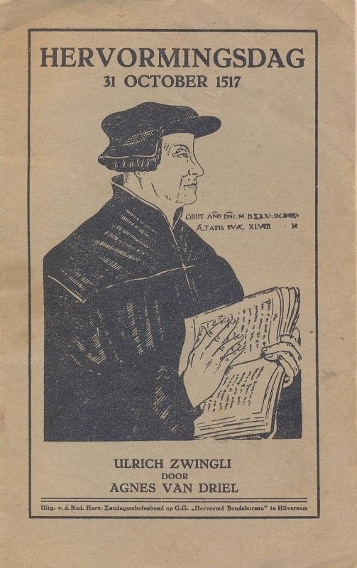 Ulrich Zwingli door Agnes van Driel, een uitgave ter gelegenheid van de Hervormingsdag op 31 october 1517. Met twee plaatjes. |