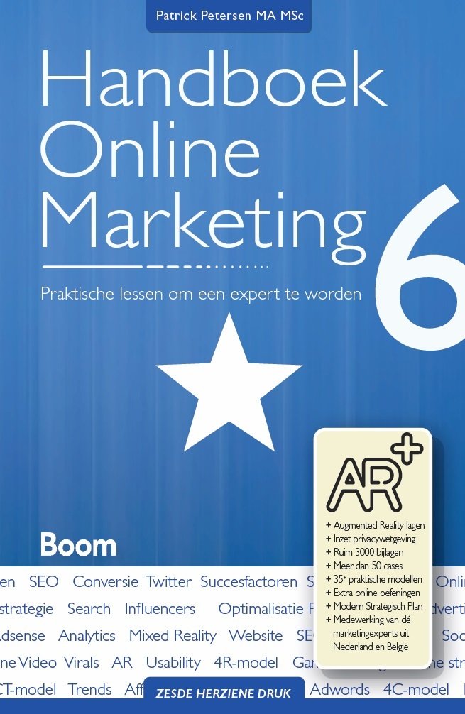 Dit praktische studie- en managementboek is in zijn zesde editie vernieuwd en nog completer gemaakt. Nieuwe inzichten, cijfers en ontwikkelingen van invloed op de online marketingmix, komen uitgebreid aan bod.\n\nHet Handboek Online Marketing 6 (#HOM6) verschaft je als (toekomstig) onlinemarketeer zowel de theoretische grondslagen als de praktische tools om een effectieve onlinemarketingstrategie te ontwikkelen en uit te voeren. Doorspekt met voorbeelden uit de praktijk laat Patrick Petersen zien hoe onlinemarketing bedacht en uitgevoerd kan worden om effectief te zijn.\n\nPraktisch en crossmediaal boek\nHet Handboek Online Marketing 6 is een praktisch en crossmediaal boek met op de ondersteunende website www.handboekonlinemarketing.nl veel extra video's, interviews, extra webinars, kleurrijke modellen en opvallende cases. Het boek kent bovendien bijdragen van experts die de strategische visie op gebied van online marketing tot ver in de toekomst brengen. Leerzaam én inspirerend. \n\nNieuw in deze geactualiseerde zesde druk: \t\nNieuwe cases en interviews.\nGebruik van augmented realitylagen met directe vertoning van relevant materiaal.\nInzichten in de toekomstontwikkeling in de marketing- en communicatiesector, zoals die rondom virtual reality.\nEen uitgebreide website en Pinterestaccount die veel extra\naanvullingen bieden.\nEen uitgebreid hoofdstuk over contentstrategie, mobile en\nmixed reality, conversie en e-commerce, online engagement en\ninfluencermarketing.\nEen uitbreiding op gebied van e-commerce, online conversie en\nweboptimalisatie.\nEen uitgebreid hoofdstuk over social mediamarketing, social\nbusiness, mobile marketing en de mixed reality-ontwikkelingen.\nNieuwe strategische marketingmodellen.\nGeactualiseerde cijfers en marketingonderzoeken.\nHet boek is herschreven en opnieuw vormgegeven.\nEen uitgebreide begrippenlijst en definitie (in de geelkleurige\nkaders)\n\n''Het Handboek Online Marketing neemt mij mee door nieuwe werelden. Het boek laat zien hoe het vakgebied marketing en communicatie nieuwe en succesvolle wegen inslaat.\" Drs. Hans Molenaar, directeur Beeckestijn Business School \n\n\"Strategisch denken in online marketing is een must. Dit boek geeft aan hoe je de volwassen-wording van social, content en mobile kunt toepassen voor jouw organisatie. Disruptie kun je daadwerkelijk vormgeven, zoals dit sprankelende overzicht laat zien.\" Prof. dr. Henry Robben, hoogleraar marketing Nyenrode Business Universiteit \n\n\"Eindelijk een digital marketingboek dat ook de disruptie in de retail en het veranderend koopgedrag behandelt!\" Prof. dr. Cor Molenaar, auteur van onder andere Kijken, kijken... anders kopen \n\n\"Het Handboek Online Marketing is het enige marketingboek dat de digitale transformatie en online marketingkansen helder uitlegt.\" \nIgor Beuker, spreker/host op gebied van digital transformatie\n\nOver Patrick Petersen\nPatrick Petersen MA MSc is Senior Online Strateeg, crossmediaal marketeer, internetondernem¬er, internationaal spreker, docent en auteur. Hij studeerde in 1997 af op de Integratie van internet binnen de marketing- en communicatiemix van grote organisaties in Nederland. Dit re¬sulteerde in diverse eigen marketingmodellen die hij voor tal van gerenommeerde organisaties zoals Heijmans, TU Delft, IKEA Nederland en Delta Lloyd succesvol in de praktijk bracht. Extra master studies aan de London School of Business and Finance en de Geneva Business School, brachten hem tot de integratiemodellen van Online Marketing en de Mixed Reality Customer Experience. Petersen is door Bureau Meltwater verkozen tot de Top 10 marketing influencer.