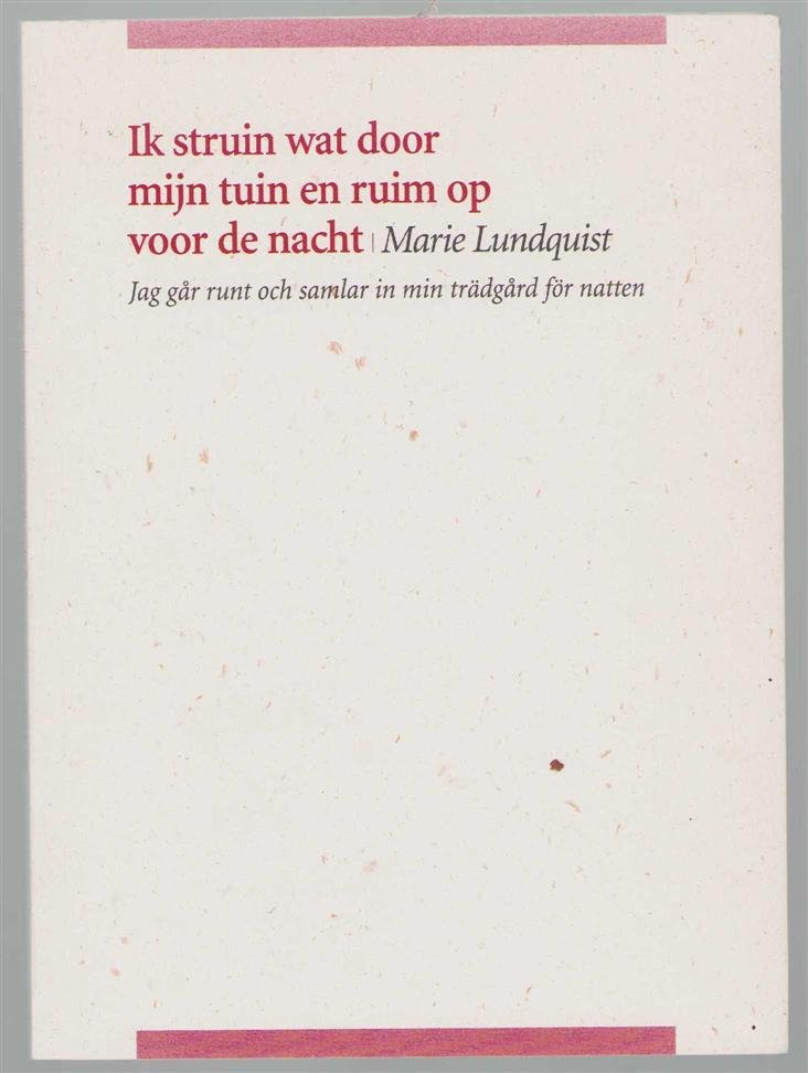 | Titel: | Ik struin wat door mijn tuin en ruim op voor de nacht = Jag går runt och samlar in min trädgård för natten |