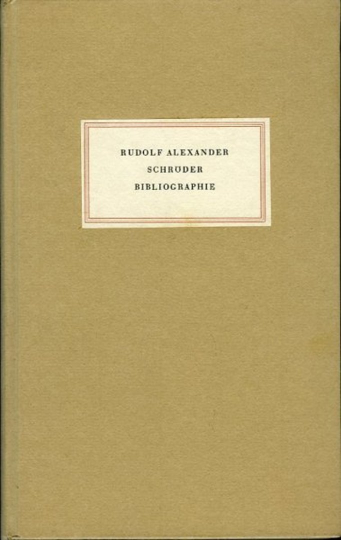 | Titel: | Rudolf Alexander Schröder Bibliographie. Das Schrifttum von und über Rudolf Alexander |