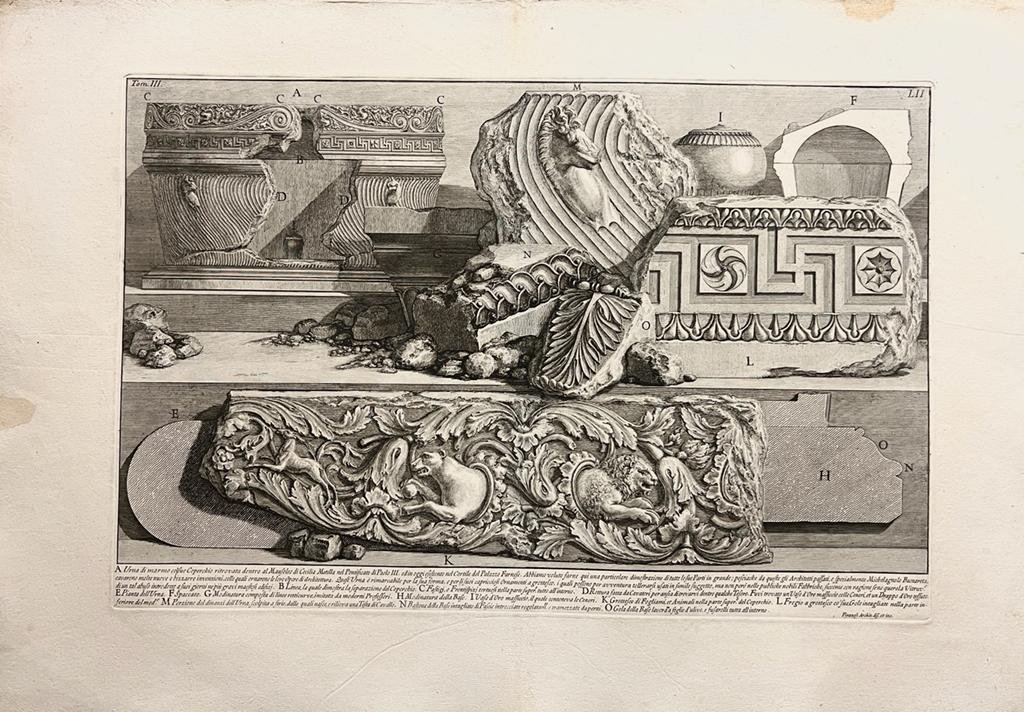 ![Giovanni Battista Piranesi (1720-1778) - [Antique print, etching, Piranesi] Urna di marmo col suo Coperchio ritrovata dentro al Mausoleo di Cecilia Metella.(Marble urn now in Palazzo Farnese), published 1756-1784, 1 p. Giovanni Battista Piranesi (1720-1778) - [Antique print, etching, Piranesi] Urna di marmo col suo Coperchio ritrovata dentro al Mausoleo di Cecilia Metella.(Marble urn now in Palazzo Farnese), published 1756-1784, 1 p.](https://images.boekwinkeltjes.nl/medium/hxkL4mff8C4tZ9FG86V6.jpeg)