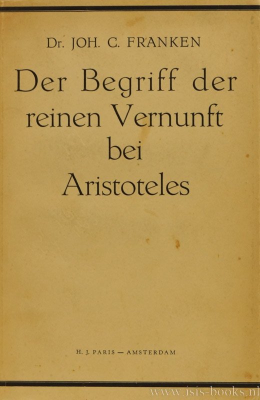 ARISTOTELES, ARISTOTLE, FRANKEN, J.C. - Der Begriff der reinen Vernunft bei Aristoteles.