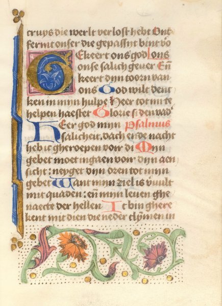 | Titel: | 15th century manuscript leaf Dutch with flowers and initial (framed) |