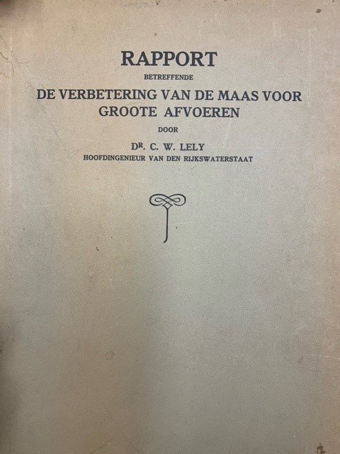 | Meer info: | De Verbetering van de Maas voor groote Afvoeren. 's Gravenhage, Algemeene Landsdrukkerij, 1926, 109pp. with 24 appendices (nr 23 with a-p parts). Written by Cornelis Willem Lely (Deventer, 9 juni 1885 - Liverpool, 8 april 1932). |