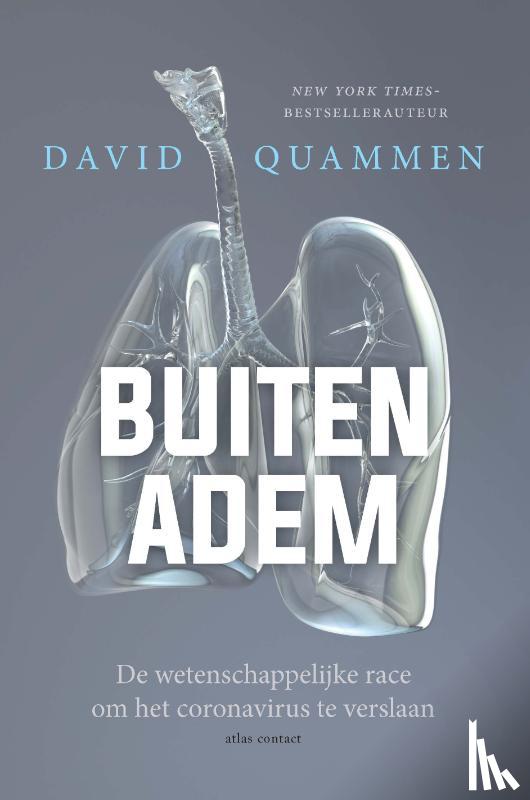 Annotatie Dit boek neemt je mee in de internationale inspanningen om het coronavirus te begrijpen en onder controle te krijgen. Je beleeft dit avontuur vanuit het perspectief van de wetenschappers. Flaptekst ‘Buiten adem’ van wetenschapsjournalist en veelgevraagd spreker David Quammen neemt je mee in de verwoede internationale inspanningen om sars-cov-2 te begrijpen en onder controle te krijgen. Het voert je mee op de meedogenloze reis het coronavirus achterna, dat waarschijnlijk een ‘eeuwig virus’ zal zijn, voorbestemd om onder de mensheid te circuleren en ons eindeloos te kwellen. Quammen legt uit dat epidemiologen deze pandemie zagen aankomen, maar dat hun waarschuwingen om politieke of economische redenen werden genegeerd en hij analyseert dat de precieze oorsprong van dit virus misschien nog jaren onbekend zal blijven. Recensies 'Interessant aan dit boek is dat het vooral over het virus gaat en over de vragen hoe en wanneer het de kop opstak, hoe en waar het van de dieren op de mens is overgesprongen. Veel van deze vragen zij |