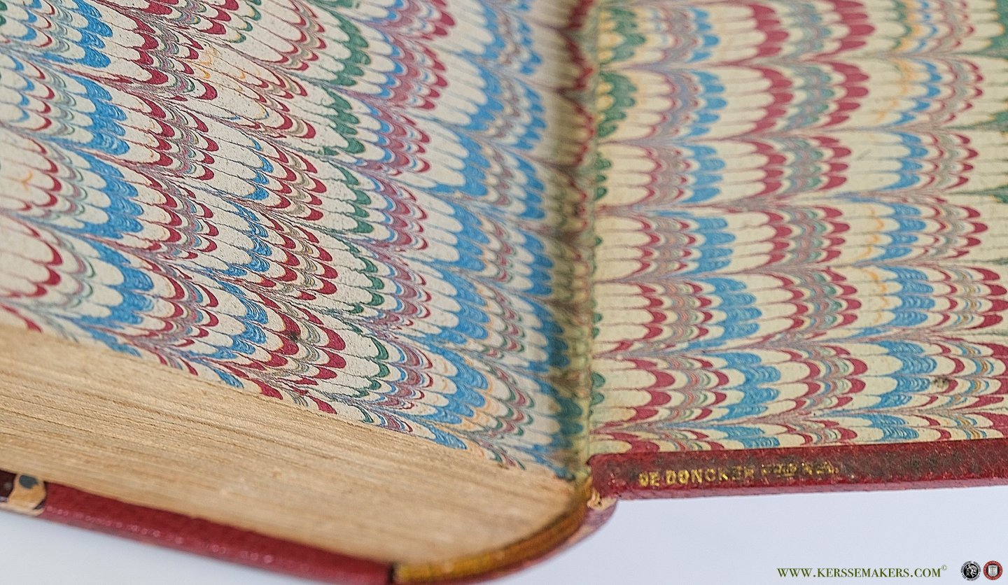 | Bijzonderheden: | 1900, Red half leather hardcover with 4 raised bands. Gilt title, decoration and crown with initials. Top edge gilt. Binding signed by the bookbinder in gilt [De Doncker] on verso back cover. x,612 pp. |