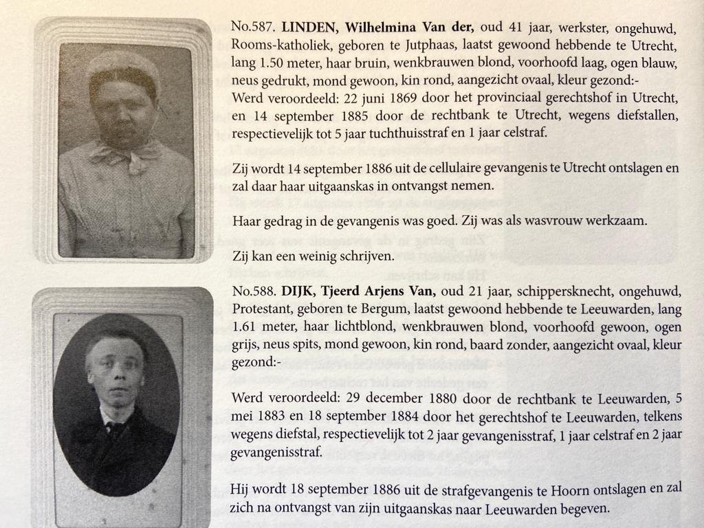 Deze uitgave is vervaardigd in beperkte oplage, in eigen beheer en bevat van iedere ontslagen gevangene een portretfoto, personalia, signalement, datum en reden van de veroordeling, datum ontslag uit de gevangenis, plannen voor de toekomst van de ontslagene, zijn gedrag in de gevangenis en het feit of hij al dan niet kan schrijven. Het doel van de minister van justitie A.E.J. Modderman (missive 31-3-1882, 4e afd., nr. 11 Geheim) was dat justitie en politie op de hoogte waren van gevaarlijk te achten gevangenen die ontslagen werden. Het betrof alle ontslagen gevangenen uit de strafgevangenissen te Leeuwarden, Hoorn, Leiden en 's-Hertogenbosch en uit de cellulaire gevangenissen te Rotterdam, Amsterdam en Utrecht de recidivisten die minstens 1 jaar eenzame opsluiting achter de rug hadden of minstens twee jaar gemeenschappelijke opsluiting. Verspreiding van het register zou alléén geschieden onder procureurs-generaal van de Gerechtshoven en officieren van justitie. Deze dienden het register zorgvuldig op te bergen en ook het bestaan van het register moest geheim blijven. Deze geheimhouding van het register werd door Modderman op 26-2-1883 wat verzacht en door zijn ambtsopvolger op 22-3-1884 ingetrokken. De website van Tresoar geeft een groot aantal van de gegevens van het register. De hier aangeboden gedrukte uitgave is completer, zowel qua tekst als qua foto's.