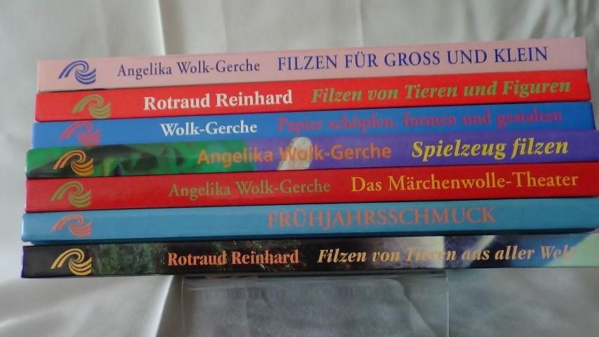 Papier- und Filztechniken. Reihe von 7 B?ndchen. Stuttgart, Verlag Freies Geistesleben. 1993. Hardcover. As New. l Jedes B?ndchen etwa 90 S. Mit Zeichnungen und Photos. Titel: Filzen von Tiere, Fr?hjahsschmuck, M?rchenwolle-Theater, Spielzeugfilzen, Papierformen, Filzen von Figuren, Filzen f?r gross und klein.