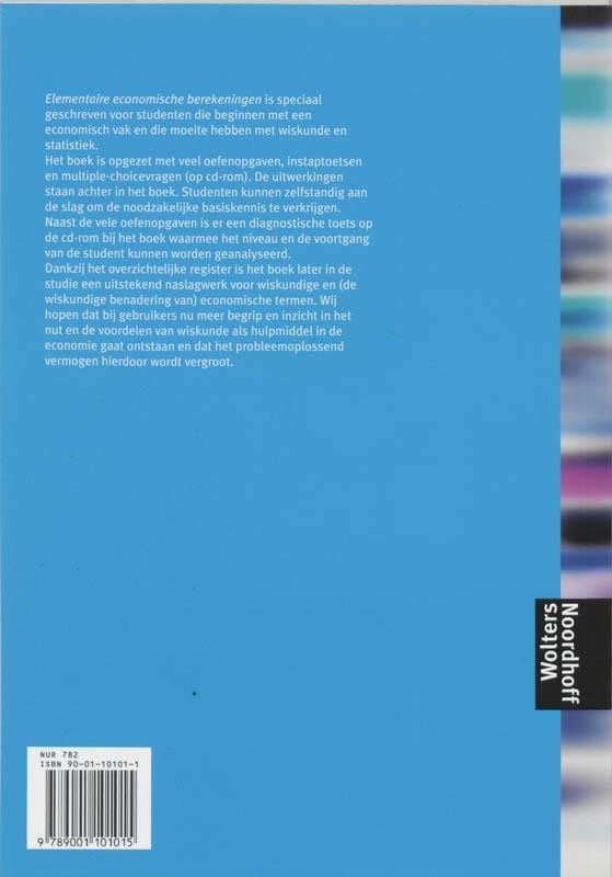 Deze stapsgewijze benadering is speciaal geschreven voor studenten die beginnen met een economisch vak en moeite hebben met wiskunde en statistiek. Zij kunnen hier zelfstandig mee aan de slag, om zo de basiskennis te krijgen die ze nodig hebben voor de (bedrijfs)economische studieboeken. (wr)De eerste hoofdstukken leggen de verschillende wiskundige onderwerpen uit die relevant zijn voor economische vakken. Ook het lezen en interpreteren van grafieken komt hierin aan bod. (wr)In het volgende hoofdstuk passen zij deze basiskennis toe aan de hand van een vijfstappenplan. De eerste stap is het bestuderen van een bepaald economisch probleem (encoding). Dan wordt dit omgezet naar een wiskundig probleem (transformatie). De derde stap is de vertaling van dit probleem naar een wiskundig vraagstuk (representatie), dat vervolgens met wiskundige middelen wordt opgelost (afwikkeling). Als laatste stap wordt gecontroleerd of hiermee het economische probleem waar het allemaal om begonnen is, ook daadwerkelijk wordt opgelost (evaluatie). De studenten vullen zelf het stappenplan in aan de hand van opdrachten. De uitwerkingen daarvan staan achter in het boek. Op de bijgevoegde cd-rom staan nog meer multiple-choicevragen waarmee ze kunnen oefenen. Dankzij het overzichtelijke register is het boek later in de studie een uitstekend naslagwerk voor wiskundige en economische termen.