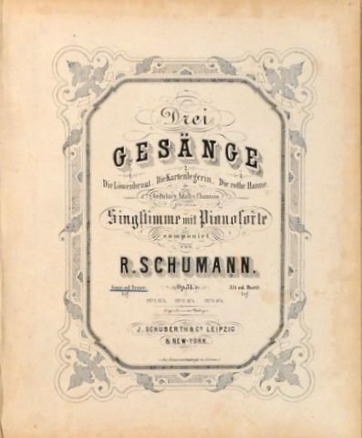 ![Schumann, Robert: - [Op. 31] Drei Gesänge. 1. Die Löwenbraut. 2. Die Kartenlegerin. 3. Die rothe Hanne. Gedichte v. Adalb. v. Chamisso. Für eine Singstimme mit Pianoforte. Op. 31. Sopr. od. Tenor Schumann, Robert: - [Op. 31] Drei Gesänge. 1. Die Löwenbraut. 2. Die Kartenlegerin. 3. Die rothe Hanne. Gedichte v. Adalb. v. Chamisso. Für eine Singstimme mit Pianoforte. Op. 31. Sopr. od. Tenor](https://images.boekwinkeltjes.nl/medium/n0KWma9mrA94EdWjIBaP.jpg)