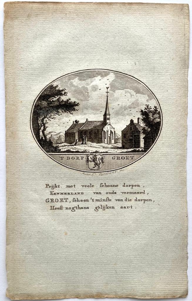 | Titel: | [Original city view, antique print] 't Dorp Groet, engraving made by Anna Catharina Brouwer, 1 p. |