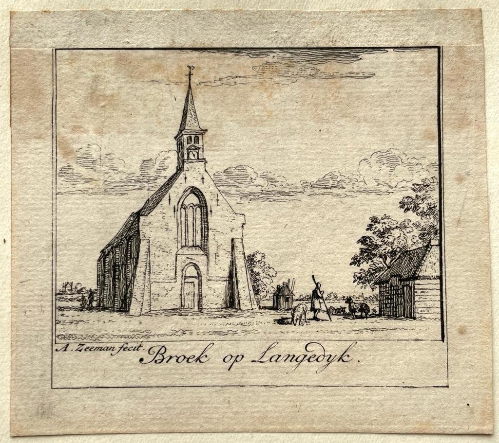 | Bijzonderheden: | Copperplate etching of Broek op Langedijk, in the Dutch province of Noord-Holland. Drawn and etched by Abraham Zeeman.This print was part of the book 'Claas Bruin, Kleefsche en Zuid-Hollandsche Arkadia (…), Amsterdam, Evert Visscher, 1730'. |