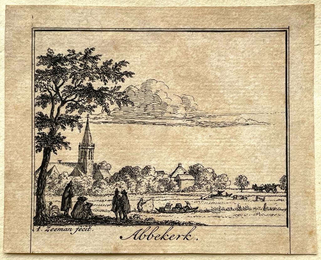 | Bijzonderheden: | Copperplate etching of Abbekerk, in the Dutch province of Noord-Holland. Drawn and etched by Abraham Zeeman.This print was part of the book 'Claas Bruin, Kleefsche en Zuid-Hollandsche Arkadia (…), Amsterdam, Evert Visscher, 1730'. |