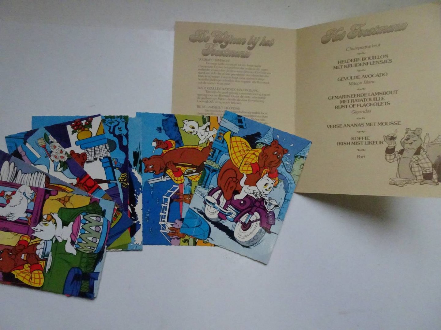 | Bijzonderheden: | s.a.; Marten Toonder Studio's; ansichtkaarten zijn ongelopen. menukaart: Heer Bommel jubileert. Menu van de feestmaaltijd te Slot Bommelstein. |