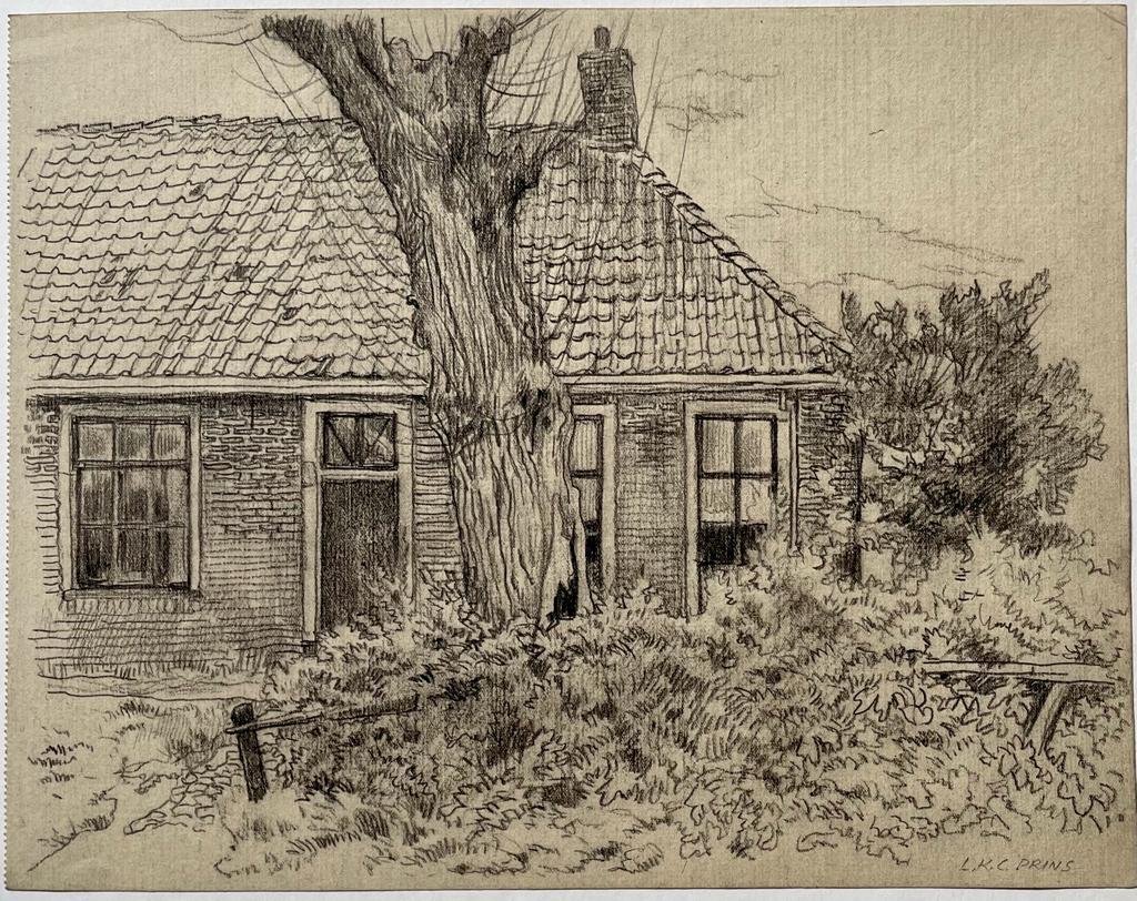 | Bijzonderheden: | View on a farmhouse. A large tree in front of it. Bushes and other smaller trees in the premises.Signed in pencil at the bottom right corner: 'L.K.C. PRINS.' Titled on verso: 'hut in het Gooi.' |