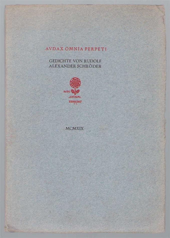 Schroder, Rudolf Alexander - Audax omnia perpeti, Gedichte