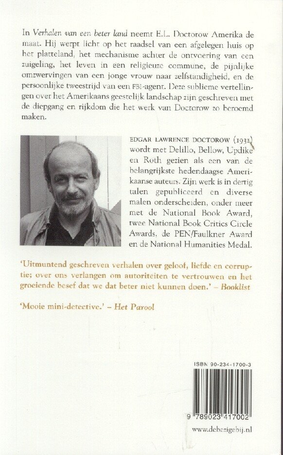 In Verhalen van een beter land neemt E.L. Doctorow Amerika de maat. Hij werpt licht op het raadsel van een afgelegen huis op het platteland, het mechanisme achter de ontvoering van een zuigeling, het leven in een religieuze commune, de pijnlijke omzwervingen van een jonge vrouw naar zelfstandigheid, en de persoonlijke tweestrijd van een FBI-agent. Deze sublieme vertellingen over het Amerikaans geestelijk landschap zijn geschreven met de diepgang en rijkdom die het werk van Doctorow zo beroemd maken.