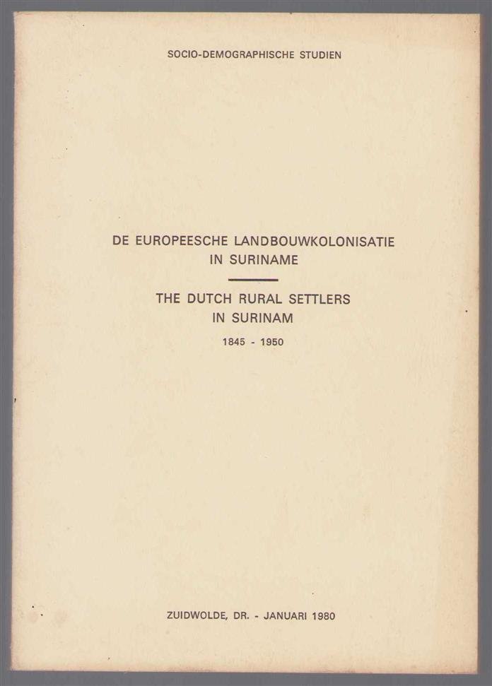 | Titel: | De Europeesche Landbouwkolonisatie in Suriname = The Dutch rural settlers in Surinam, 1845-1950 |