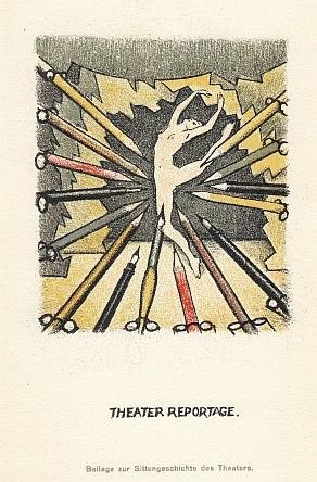 Vienna / Leipzig, Verlag für Kulturforschung, 1925. 23 x 16 cm. Original green cloth, decorated in white. 1st edition. With 5 separate lithographed plates in a pocket in the back of the book, lithographed 'Beilagenwerk zur Sittengeschichte des Theaters'. First edition. Names of former owner on flyleaf and title, otherwise fine. 'History of Morality in the Theatre'. With the rare 'Beilagen' or Extras. These are anonymous, original color lithographies, amongst these a funny movable print in very good condition, and other nice images. A fascinating book, a naughty child of its times, in excellent condition.