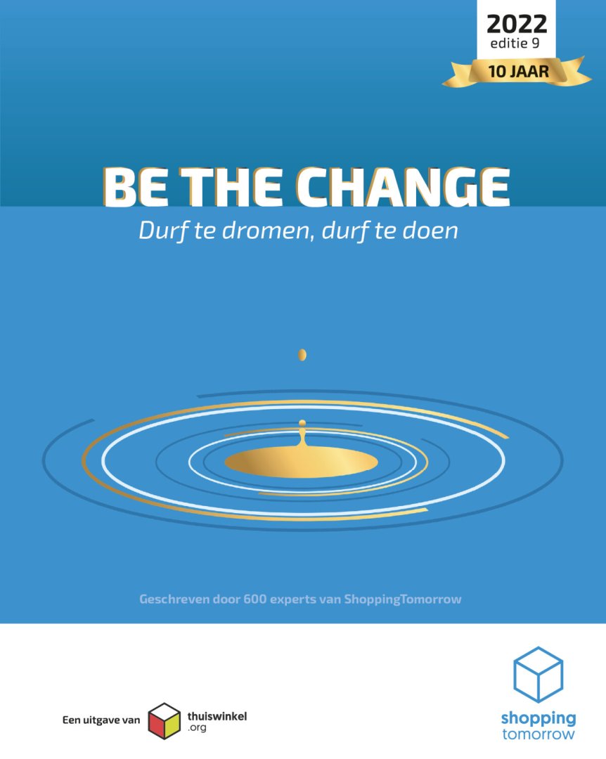 BE THE CHANGEDurf te dromen, durf te doenIn onze snel veranderende wereld is digitalisering een constante. ShoppingTomorrow, de inspiratiebron voor digitale trends en de innovatiemotor van Thuiswinkel.org, verzamelt en publiceert al sinds 2013 inzichten van professionals in digital commerce, om de BV Nederland futureproof te helpen maken. Want zonder digitale transformatie geen toekomst. Dit boek bundelt de bevindingen van 25 verschillende expertgroepen in het tiende onderzoeksjaar van digital commerce-platform ShoppingTomorrow. Zeshonderd professionals uit het exclusieve en actieve netwerk bogen zich over ontwikkelingen die de markt vormgeven. Het boek biedt tal van praktische handvatten en inspiratie, voor en door de markt. De toekomst begint vandaag.Iwan Banens | AEGON – Senior Product Owner CRM“Met veel plezier ben ik vanaf het eerste onderzoeksjaar betrokken bij ShoppingTomorrow. Al voor de tiende keer heb ik mijn bijdrage mogen leveren. Dit jaar onderzochten we met onze expertgroep hoe je AI en conversational technieken kunt inzetten om tot een hoger niveau van klantinteractie te komen. Voor mij blijft het heel gaaf en leerzaam om in korte tijd met een groep experts de kennis te bundelen in een bluepaper die andere professionals een stap verder brengt. Ook is het bijzonder om te zien dat steeds aan actuele onderwerpen wordt gewerkt. Van agile strategy en online handelsplatformen in 2014 tot digital persuasion en phygital commerce in 2022. ShoppingTomorrow loopt altijd voorop en het biedt een mooi platform om je netwerk te vergroten!”Paul de Vries | DIDI – Commercial Director & Raad van Advies ShoppingTomorrow“Al jarenlang werk ik als expert graag mee aan de bluepapers. Als lid van de Raad van Advies denk ik ook na over de strategische invulling van ShoppingTomorrow. Hoe kunnen we de BV Nederland ondersteunen bij het inspelen op trends binnen e-commerce en het digitale ecosysteem? Elk jaar weer ben ik onder de indruk van het werk van de experts, die verschillende disciplines en bedrijfstakken vertegenwoordigen. Met veel passie buigen zij zich over de interessantste vraagstukken in digital commerce.”Rianne van Dijken | Wehkamp – Lead Customer Care“Binnen de expertgroep Game-changing Customer Journeys heb ik waardevolle ervaringenuitgewisseld over belangrijke elementen binnen de klantreis. We hebben hele goede en minder goede voorbeelden inzichtelijk gemaakt. Ik vond het bijzonder om ervaringen te delen vanuit verschillende organisaties en van elkaar te leren, ook al werk je in verschillende branches. Vanuit diverse perspectieven hebben we als groep gebrainstormd over de toekomst, en onszelf daarbij ook afgevraagd wat vandaag al anders kan. Opmerkelijk is te zien dat kleine veranderingen een groot positief effect kunnen hebben.”