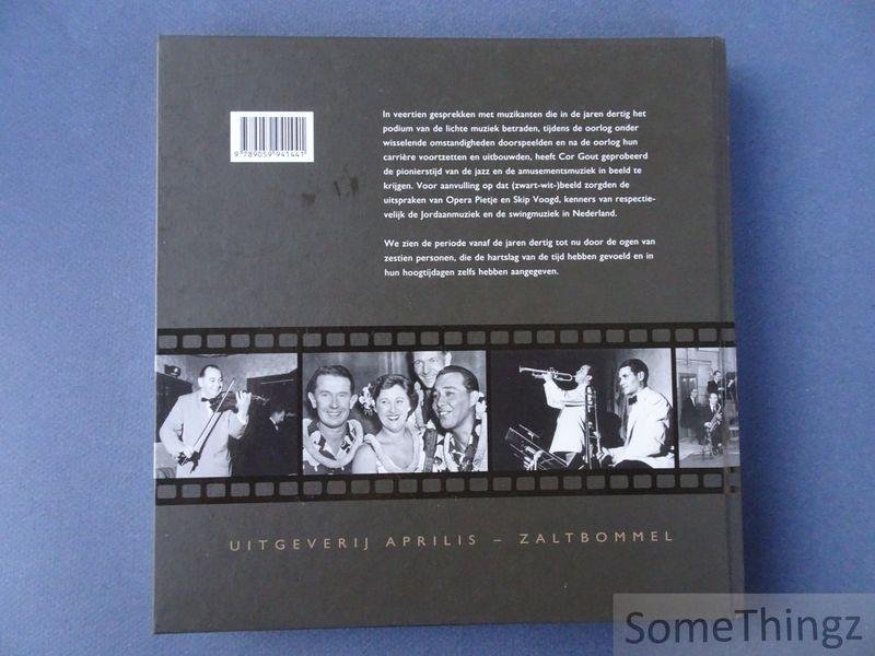 Pia Beck, Martin Beekmans (en de grote Nederlandse dansorkesten), Eddy Christiani, Sanny Day (en de Millers), Theo Ehrlicher (en de Kilima Hawaiians), Leo Fuld, Harry de Groot, Johnny Holshuysen, Hans Ninaber, Opera Pietje (en het Jordaanlied), Frans Poptie, Toby Rix, Gregor Serban, Marcel Thielemans (en de Ramblers), Skip Voogd, Frans Wanders (en het Orkest Malando). In veertien gesprekken met muzikanten die in de jaren dertig het podium van de lichte muziek betraden, tijdens de oorlog onder wisselende omstandigheden doorspeelden en na de oorlog hun carrière voortzetten en uitbouwden, heeft Cor Gout geprobeerd de pionierstijd van de jazz en de amusements-muziek in beeld te krijgen. Voor aanvulling op dat (zwart-wit-) beeld zorgden de uitspraken van Opera Pietje en Skip Voogd, kenners van respectievelijk de Jordaanmuziek en de swingmuziek in Nederland. Laatstgenoemde heeft de auteur ook van advies gediend bij het uitwerken van de interviews. In de gesprekken met de muzikanten lag de nadruk vooral op het leven met het instrument: hoe hadden de zangers en instrumentalisten hun bijzondere talent ontwikkeld en welke kwaliteiten en eigenschappen hadden ertoe bijgedragen dat ze uiteindelijk de top van de Nederlandse populaire muziek bereikten? Maar ook de meer persoonlijke ervaringen en gezichtspunten kwamen ter sprake. We zien de periode vanaf de jaren dertig tot nu door de ogen van zestien personen, die de hartslag van de tijd hebben gevoeld en in hun hoogtijdagen zelfs hebben aangegeven. Het boek bevat een keur aan zwart-wit-foto's, de meeste afkomstig uit de collecties van de muzikanten zelf.
