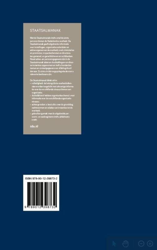 Met de Staatsalmanak vindt u snel de juistepersoon binnen de Nederlandse overheid. DeStaatsalmanak geeft uitgebreide informatieover instellingen, organisatieonderdelen enadviesorganen van de overheid, zoals ministeriesen provincies, inspectiediensten en directoraten-generaal, en gerechtshoven en rechtbanken.Naast adres- en persoonsgegevens zijn in deStaatsalmanak taken en doelstellingen van diverseinstanties opgenomen en treft u honderdennamen en contactgegevens van afdelingshoofdenaan. Zo ziet u in één oogopslag wie de voor urelevante beslissers zijn.De Staatsalmanak blinkt uit in:* volledigheid: de belangrijkste overheidsdienstenworden toegelicht met uitvoerige informatieover de verschillende niveaus binnen eenorganisatie;* duidelijkheid: heldere organisatieschema's metinformatie over de verschillende organisatieniveaus;* achtergronden: u leest alles over de grondslag,rechtsvormen en relaties van instanties tot deoverheid;* gebruikersgemak: met de uitgebreide persoons-en zaakregisters vindt u altijd wat uzoekt.