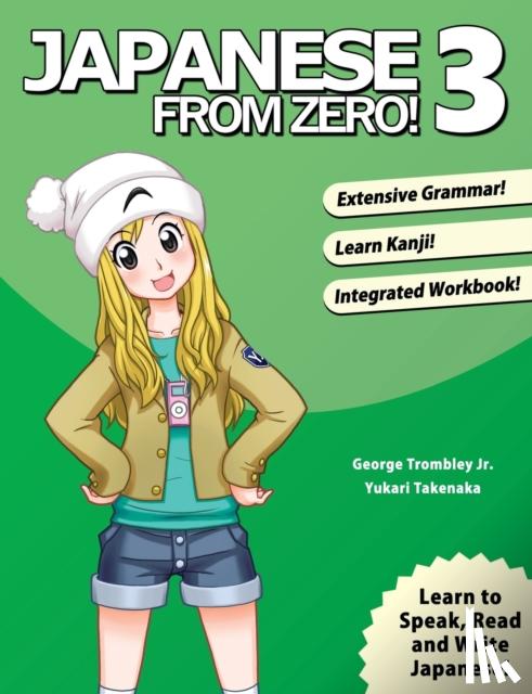 Flaptekst Japanese From Zero! is an innovative and integrated approach to learning Japanese that was developed by professional Japanese interpreter George Trombley, Yukari Takenaka and was continuously refined over eight years in the classroom by native Japanese professors. Using up-to-date and easy-to-grasp grammar, Japanese From Zero! is the perfect course for current students of Japanese as well as absolute beginners. In volume three of the Japanese From Zero! series, readers are introduced to new grammar concepts, over 1000 new words and expressions, and are also taught the Kanji writing system. |