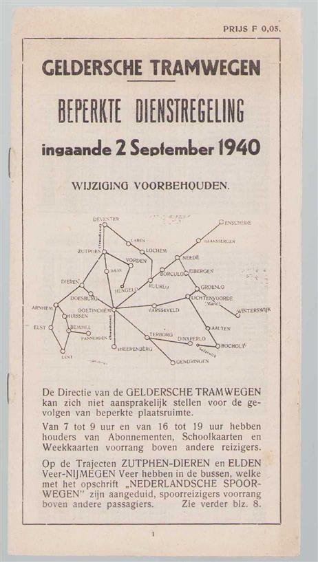| Titel: | Beperkte dienstregeling ingaande 2 September 1940 |