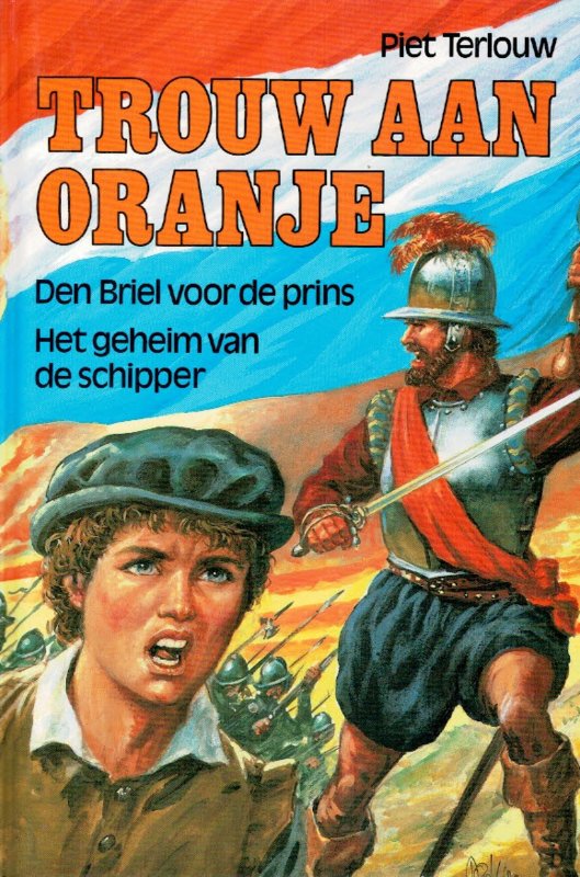 Trouw aan Oranje, twee verhalen voor de jeugd van Piet Terlouw. - Den Briel voor de prins - Het geheim van de schipper Omslag en illustraties van Dick van de Pol. |