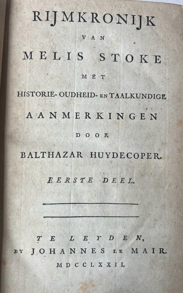 ![Stoke, Melis - [The Hague, 1772, Melis Stoke] Rijmkronijk van Melis Stoke met historie-, oudheid- en taalkundige aanmerkingen door B. Huydecoper, Leiden: J. le Maire 1772, (8), 615; (2), 613; (2), 607, (31) pp. Stoke, Melis - [The Hague, 1772, Melis Stoke] Rijmkronijk van Melis Stoke met historie-, oudheid- en taalkundige aanmerkingen door B. Huydecoper, Leiden: J. le Maire 1772, (8), 615; (2), 613; (2), 607, (31) pp.](https://images.boekwinkeltjes.nl/medium/8hWpeqKd4Mxz9lVOscyq.jpeg)