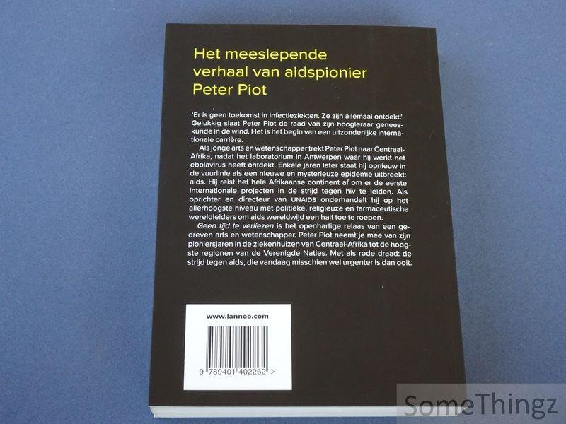 Het meeslepende verhaal van 40 jaar pionierswerk in de strijd tegen dodelijke infectieziekten. 'Er is geen toekomst in infectieziekten. Ze zijn allemaal ontdekt.' Gelukkig slaat Peter Piot de raad van zijn hoogleraar geneeskunde in de wind. Het is het begin van een uitzonderlijke internationale carrière. Als jonge arts en wetenschapper trekt Peter Piot naar Centraal- Afrika, nadat het laboratorium in Antwerpen waar hij werkt het ebolavirus heeft ontdekt. Enkele jaren later staat hij opnieuw in de vuurlinie als een nieuwe en mysterieuze epidemie uitbreekt: aids. Hij reist het hele Afrikaanse continent af om er de eerste internationale projecten in de strijd tegen hiv te leiden. Als oprichter en directeur van UNAIDS onderhandelt hij op het allerhoogste niveau met politieke, religieuze en farmaceutische wereldleiders om aids wereldwijd een halt toe te roepen. Geen tijd te verliezen is het openhartige relaas van een gedreven arts en wetenschapper. Peter Piot neemt je mee van zijn pioniers jaren in de ziekenhuizen van Centraal-Afrika tot de hoogste regionen van de Verenigde Naties. Met als rode draad: de strijd tegen aids, die vandaag misschien wel urgenter is dan ooit. 'Dit is een relaas over ontdekkingen, over een keur van bijzondere momenten, mensen en ontwikkelingen, gezien door één bril: mijn eigen ervaringen. Afwisselend was ik een detective die in het hart van Afrika op zoek ging naar de oorzaak van een epidemie; een wetenschapper die de antibioticaresistentie van bacteriën en de genetische diversiteit van hiv onderzocht; een wanhopige arts die zorgde voor patiënten met aids terwijl er geen antiretrovirale behandeling voorhanden was; een onderzoeker en volksgezondheidsprofessional die preventie- en behandelingsprogramma's opstelde; een VN-functionaris die een complexe multilaterale organisatie in tachtig landen leidde en die hervormingen binnen de VN initieerde; een geduldige diplomaat die over politieke oplossingen en prijsverlagingen voor antiretrovirale medicijnen onderhandelde; een koppige campagnevoerder die de machtigen der aarde probeerde te bereiken en die mensen op onverwachte plaatsen bewust maakte van aids; een gefrustreerde bestrijder van bureaucraten; een activist vanaf het prille begin... En vaak was ik dat allemaal tegelijk, altijd in samenspel met andere spelers. Mijn memoires zijn een weerspiegeling van al die incarnaties.'