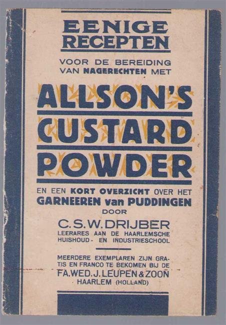 | Titel: | Enige recepten voor de bereiding van nagerechten met Allson s Custard Powder |