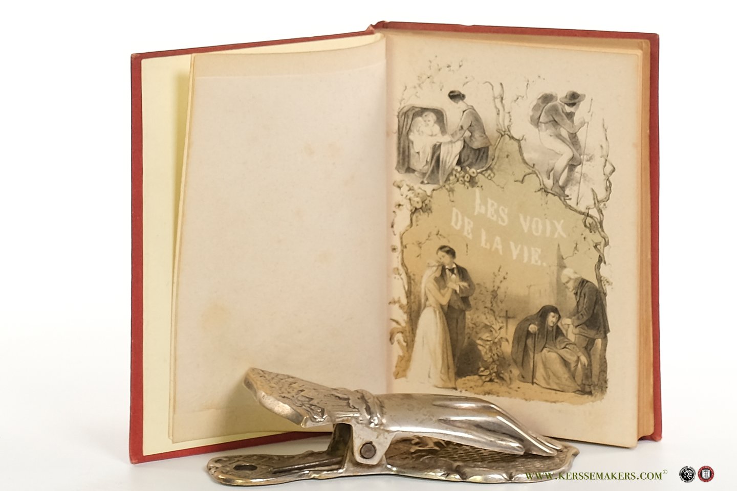 | Meer info: | spine and frontcover abundantly gilt in romantic style; backcover blindstamped. Edges gilt. Endpapers of glazed paper (a few minimal brown spots). xiv,(ii),144 pp. With frontispiece: tinted lithograph with domestic scenes. Binding by J. V. van den Heuvel, 's Hage. - Nice copy of the first edition. |