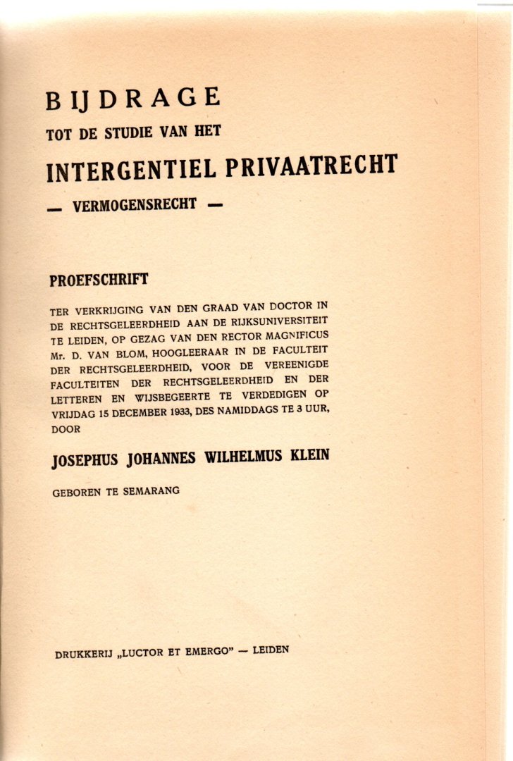 J.J.W. Klein - Bijdrage tot de studie van het intergentiel priv