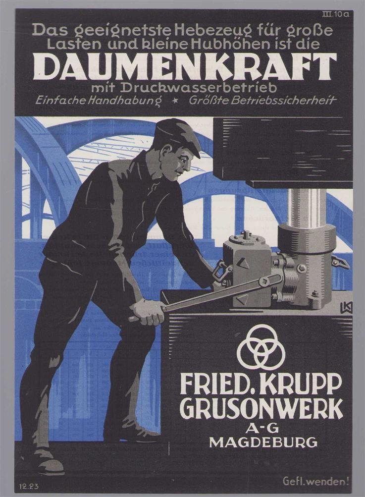 | Bijzonderheden: | n.d., Zeer goed, Fried. Krupp Grusonwerk ..... DUMENKRAFT .... Similar in style to J.C.H. Heijenbrock - Achterzijde met advertentie - reclame tekst 17,5cm x 25cm x 0,1cm |