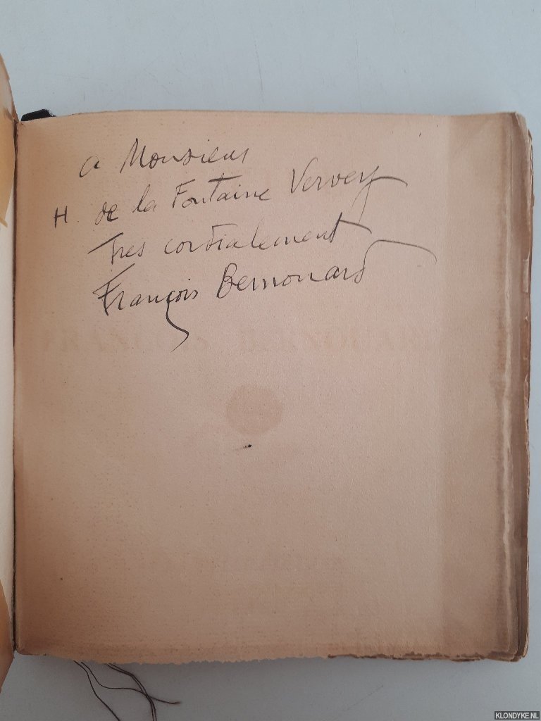 | Bijzonderheden: | Paperback; 1911; Conditie: Goed; Original wrappers, ca. 13.5x15.5cm, ribbon marker, uncut. Signed with dedication for H. de la Fontaine Verwey by François Bernouard onendpaper. |