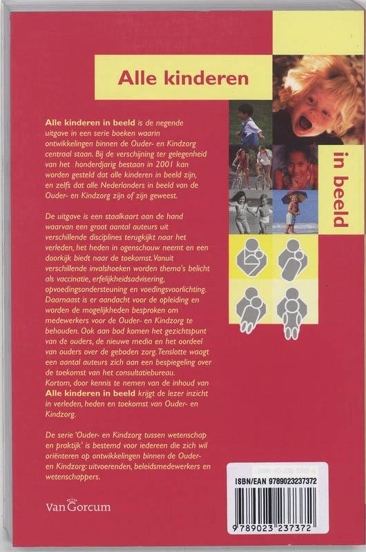 "Alle kinderen in beeld is de negende uitgave in een serie boeken waarin ontwikkelingen binnen de Ouder- en Kindzorg centraal staan. Bij de verschijning ter gelegenheid van het honderdjarig bestaan in 2001 kan worden gesteld dat alle kinderen in beeld zijn, en zelfs dat alle Nederlanders in beeld van de Ouder- en Kindzorg zijn of zijn geweest.De uitgave is een staalkaart aan de hand waarvan een groot aantal auteurs uit verschillende disciplines terugkijkt naar het verleden, het heden in ogenschouw neemt en een doorkijk biedt naar de toekomst. Vanuit verschillende invalshoeken worden thema's belicht als vaccinatie, erfelijkheidsadvisering, opvoedingsondersteuning en voedingsvoorlichting. Daarnaast is er aandacht voor de opleiding en worden de mogelijkheden besproken om medewerkers voor de Ouder- en Kindzorg te behouden. Ook aan bod komen het gezichtspunt van de ouders, de nieuwe media en het oordeel van ouders over de geboden zorg. Tenslotte waagt een aantal auteurs zich aan een bespiegeling over de toekomst van het consultatiebureau. Kortom, door kennis te nemen van de inhoud van Alle kinderen in beeld krijgt de lezer inzicht in verleden, heden en toekomst van Ouder- en Kindzorg.De serie ¿Ouder- en Kindzorg tussen wetenschap en praktijk' is bestemd voor iedereen die zich wil oriënteren op ontwikkelingen binnen de Ouder- en Kindzorg: uitvoerenden, beleidsmedewerkers en wetenschappers.Alle kinderen in beeldPrioriteiten in de zuigelingenzorgOuder- en Kindzorg toen en nu, het verpleegkundige aandeel in de zorgPreventie van kindermishandeling: kansen in de jeugdgezondheidszorg 0-4-jarigenOnze toekomst: een gezonde jeugdDe eeuw van mijn moeder... Heeft het gezin nog toekomst?Maatschappelijke opvoeding500 jaar infectieziekten, 100 jaar OKZ en 50 jaar vaccineren in NederlandVan ondervoeding naar onevenwichtige voeding: verschuivende uitgangspunten voor de voedingsadviseringOntwikkelingsstoornissen signaleren, een historisch perspectiefZat het in 1901 nog niet tussen de oren? Herkenning van psychosociale problemen bij kinderenVan meezorgen tot zorg. Het kind centraalAdvies bij opvoedingsproblemenShantala babymassage. Een liefdevol contact tussen ouder en kindInbakeren, van traditie naar gerichte interventieOnderzoek bij een zuigeling met een voorkeurshoudingEetproblemen bij jonge kinderen in ontwikkelingsperspectiefWetenschappelijk schrijven en lezen: enkele aandachtspuntenMeer kansen voor pre- en dysmature kinderen: hoe is de zorg voor kinderen en de begeleiding van ouders te verbeteren?Allochtone gezondheidsvoorlicht(st)ers en zorgconsulentenHet consultatiebureau is een verouderd instituutVoor nu en voor laterEen uitwisseling van ervaringen en kennis: de blik van de zuiderburenDas medizinische Versorgungssystem für Kinder van 0 bis 9 jahren in DeutschlandResultaten van implementatiestudie neonatale gehoorscreeningKosten van neonatale gehoorscreeningDiagnostiek na een 'onvoldoende' op de neonatale gehoorscreeningGezinsbegeleiding voor zeer jonge kinderen en hun ouders nadat een ernstig gehoorverlies is vastgesteldWat heeft een plattelandsgemeente als Strijen met Ouder- en Kindzorg?De kijk vanuit de gemeente Dordrecht. Zorg en welzijn voor kinderen reeds lang verbonden in DordrechtOuder- en Kindzorg op de interculturele maatBenutten van meerwaarde van culturele diversiteitDelen van opvoeding met de kinderopvangDe opvoeders van morgenVideo-hometraining en video interactie begeleidingConfronteren met behoud van relatie. Gespreksvoering met ouders bij een vermoeden van kindermishandelingHet Nieuwetijdskind. Kind van deze tijdDenk aan VAT? Jij bent belangrijk voor de ontwikkeling van je kindBasisvragen rond de adoptie van een kindJeugdgezondheidszorg en jeugdzorg: Is er toekomst voor ketenzorg?Transmuraal specialistisch kinderteam Amsterdam ThuiszorgTrauma's bij vluchtelingen, kinderen uit oorlogslandenKinderen op bestelling: hoe ver willen we gaan met de mogelijkheden van de genetica?De dokters van morgen. Vraagt collectieve preventie om een andere rol van CB-artsen? Gaat het om een verbreding of om verdieping?De integratie van de jeugdgezondheidszorg in FlevolandNaar Integrale Jeugdgezondheidszorg. Het Delflandse modelExcellente zorg voor Ouder en KindOuder- en Kindzorg en de arbeidsmarkt: hoe houd ik medewerkers binnen?Stichting Ouder- en kindzorg"
