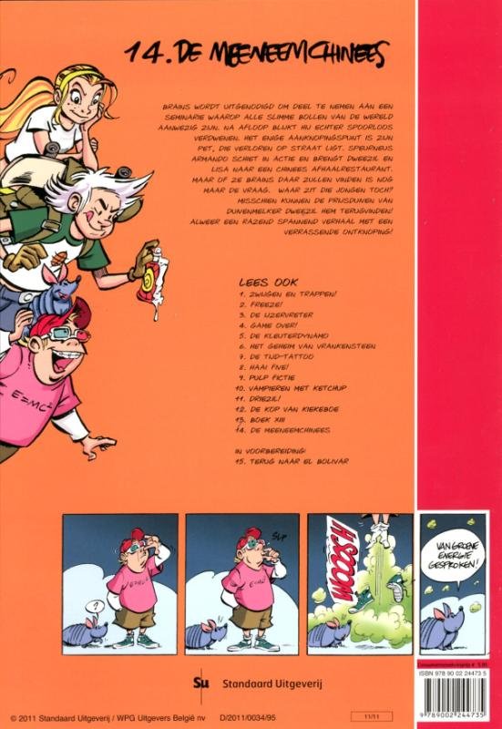 Brains wordt uitgenodigd om deel te nemen aan een seminarie waarop alle slimme bollen van de wereld aanwezig zijn. Na afloop blijkt hij echter spoorloos verdwenen. Het enige aanknopingspunt is zijn pet, die verloren op straat ligt. Speurneus Armando schiet in actie en brengt Dweezil en Lisa naar een Chinees afhaalrestaurant. Maar of ze Brains daar zullen vinden is nog maar de vraag. Waar zit die jongen toch? Misschien kunnen de prijsduiven van duivenmelker Dweezil hem terugvinden! Alweer een razend spannend verhaal met een verrassende ontknoping!
